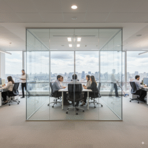 Divisória de Vidro com Junta Seca: A Arte do Minimalismo e da Precisão no Design Corporativo
