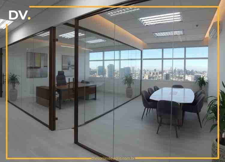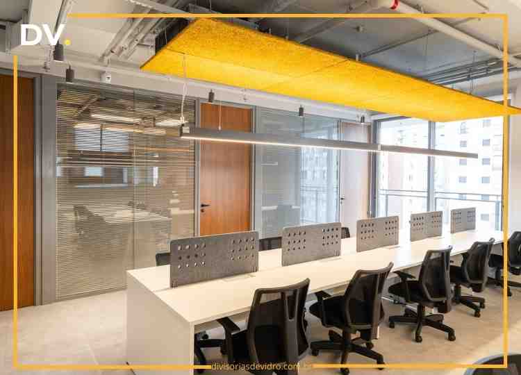• Silêncio para concentração: Nossas divisórias de vidros, contam com vedação acústica eficiente contra barulhos, ruídos externos e conversas calorosas.