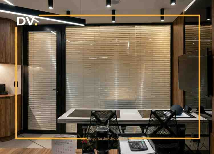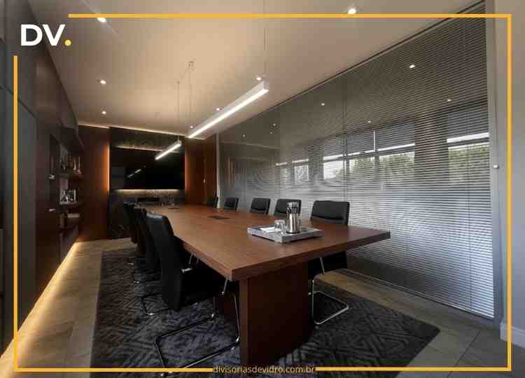 O valor da divisória de vidro duplo com persiana automática, varia entre R$ 3.500 a R$ 6.500 — Controle por controle remoto ou Alexa. Topo de linha corporativo.