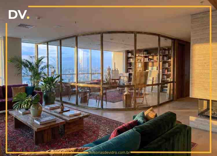 Fabricação, montagem e instalação de divisórias de vidro curvo na região de Alphaville, nos seguintes modelos: